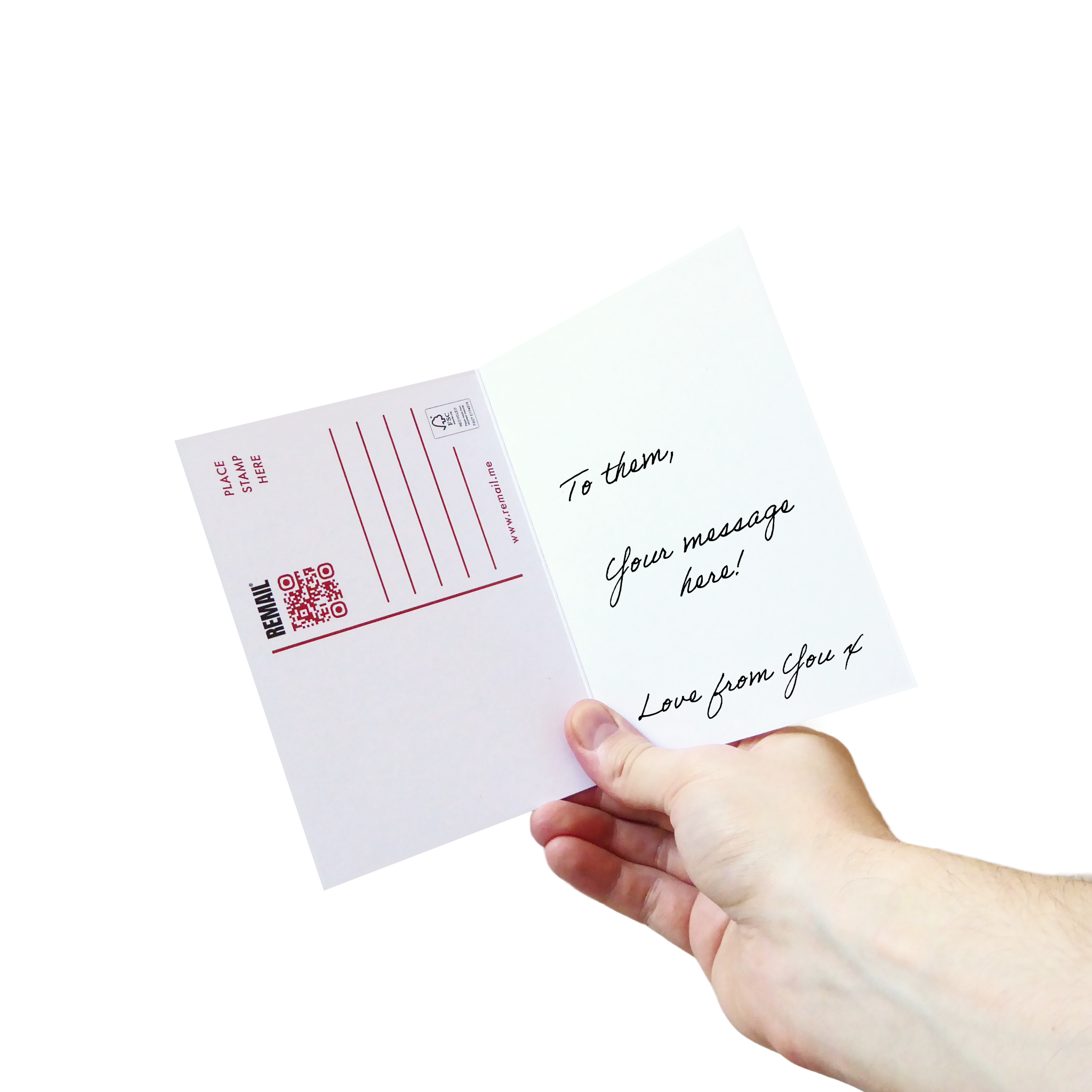 We’ve reinvented the humble greeting card, so that each card is designed to be remailed.